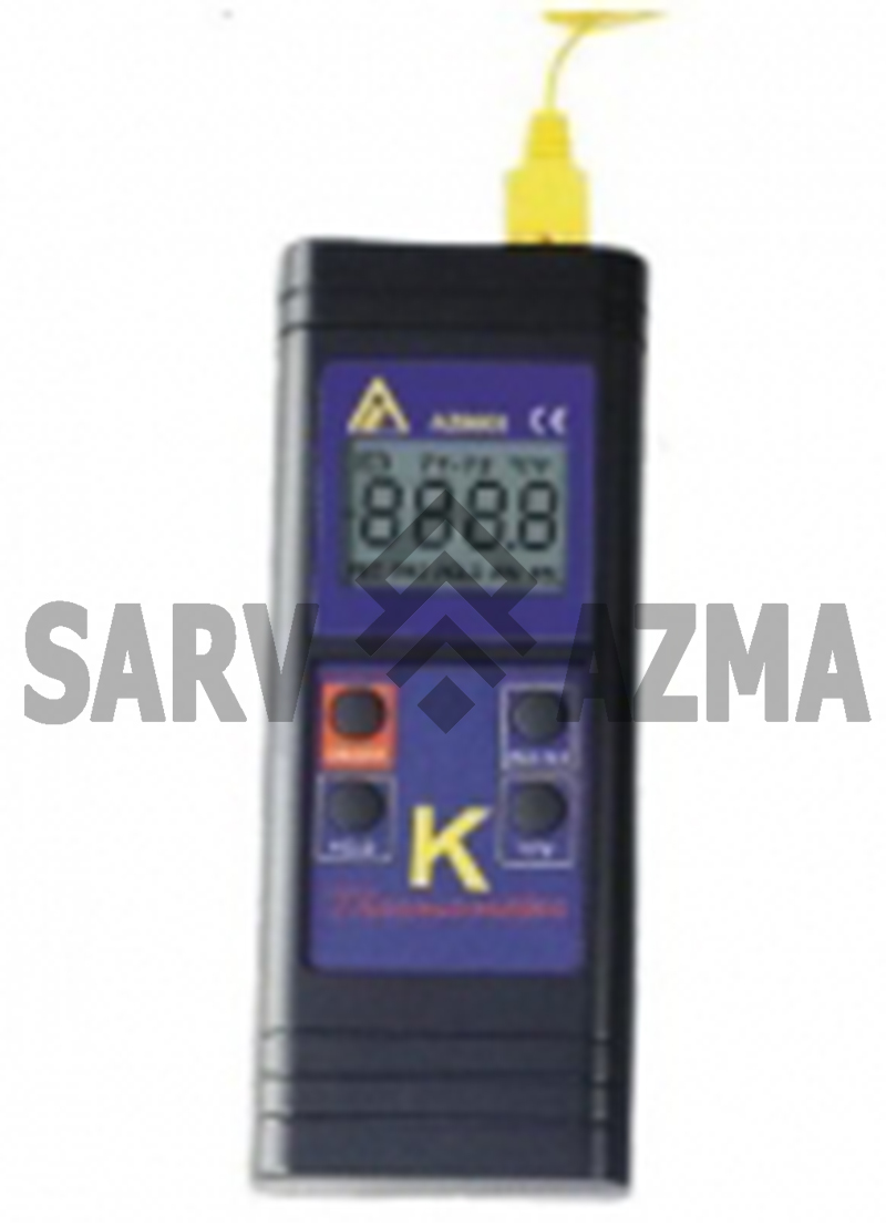 SARVAZMA.IR-50 to +1300 با دقت 0.1،قابل اتصال به سنسور دمایی تیپ K امکان Hold روی بالاترین نقطه حرکت دما ، تبدیل دما از ºC به ºF،AUTO Off دارای کیف حمل